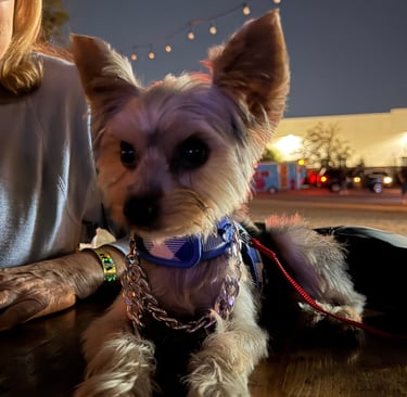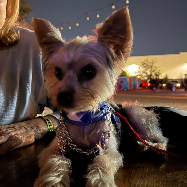 Below: Chip the Yorkshire terrier wearing bling